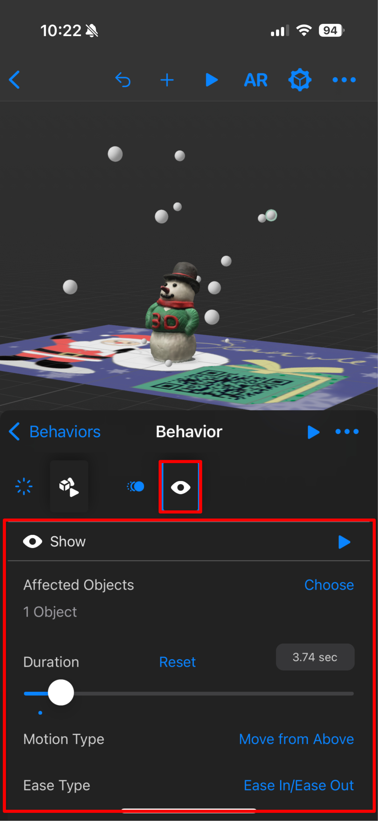 It allows anyone—even without 3D experience—to build interactive augmented-reality scenes using simple drag-and-drop controls. You can place 3D objects, add animations, create behaviors, and preview everything in real-world space directly through your iPhone or iPad.